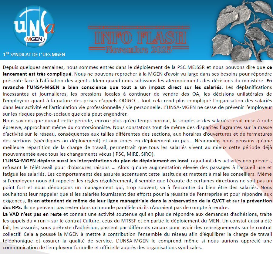 MGEN 48- flash 25 Novembre 2025 Secteur MGEN 25/11/2025 / Commentaires fermés sur MGEN 48- flash 25 Novembre 2025 info-UNSA-novembre-2025-Vdef